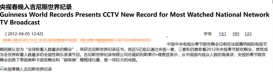 45. 2012年,它凭借“全球最大规模电视观看活动”载入吉尼斯世界纪录。