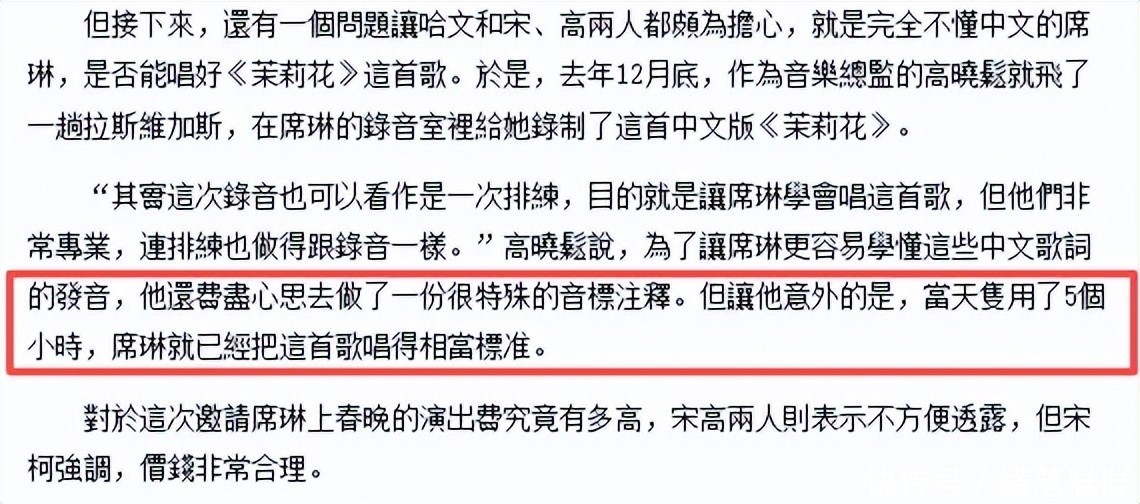 35. 春晚导演组特派高晓松远赴拉斯维加斯指导其汉语发音。