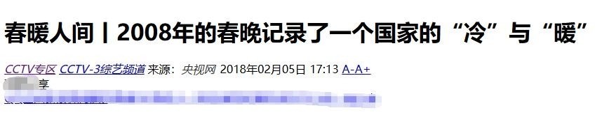 120. 部分参考资料:中央广播电视总台中文国际频道官方账号:暴露年龄!那些你能完整跟唱的春晚民歌……环球在线:本山:我是观众吃惯了的那道菜CCTV.节目官网:春暖人间丨2008年的春晚记录了一个国家的“冷”与“暖”中国日报网:央视春晚入吉尼斯世界纪录中国广播网:摇不到 爱卡壳 除夕红包遭吐槽:腾讯否认后台故障今日早报:席琳迪翁五小時學唱《茉莉花》 哈文親自赴美邀請