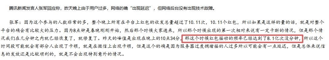 51. 腾讯数据显示,每分钟红包摇动次数高达8.1亿次。