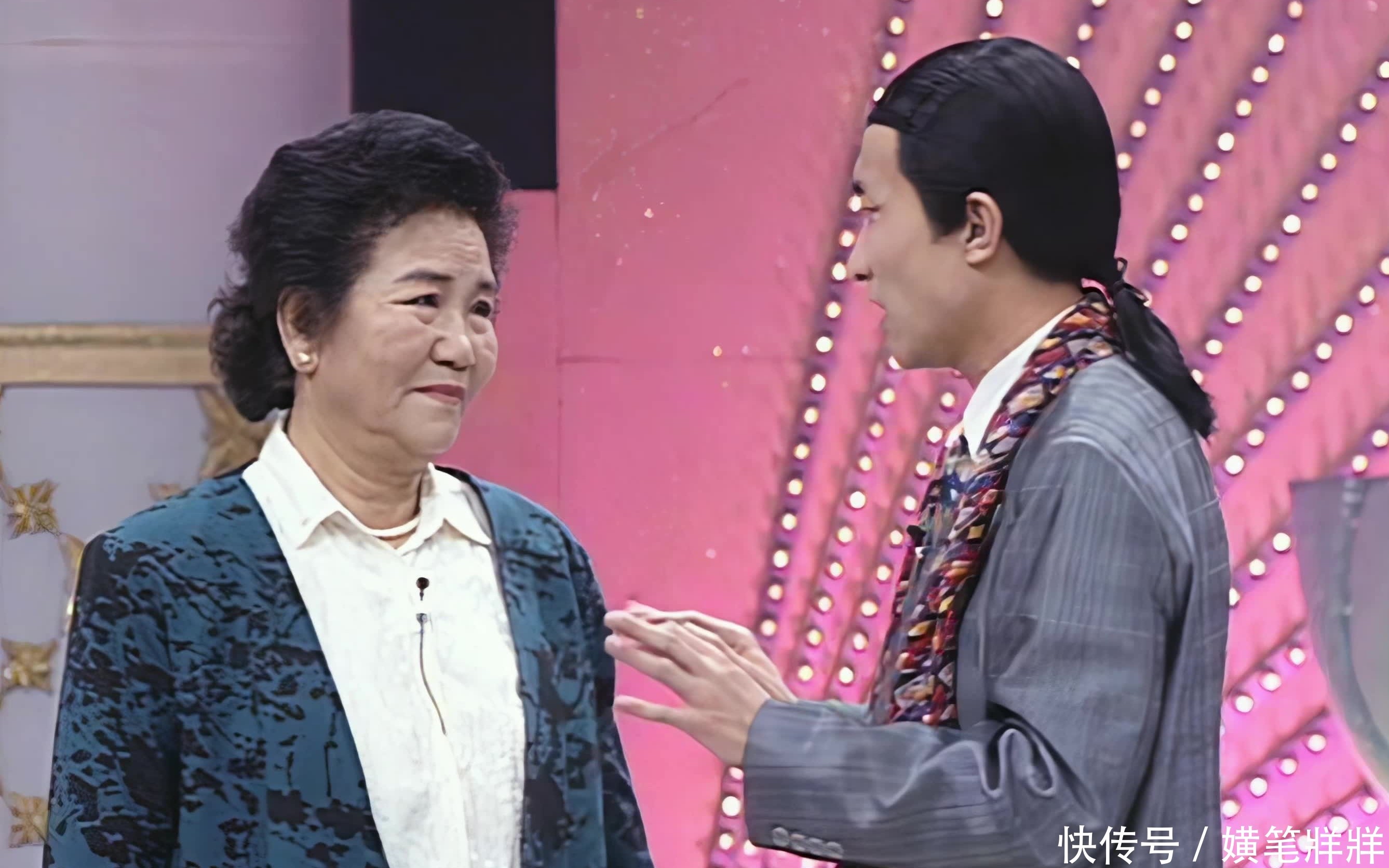 16. 姜昆找不到道具扁担,急中生智拿起扫帚杆登台,逗得李谷一险些笑场。
